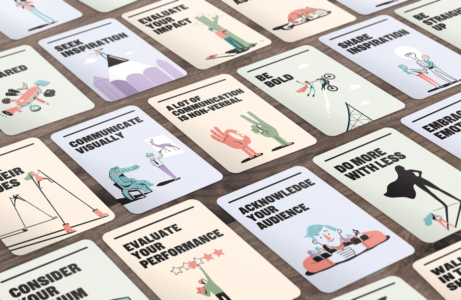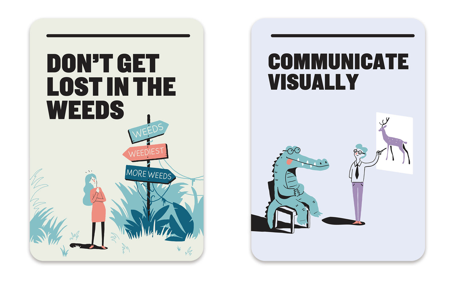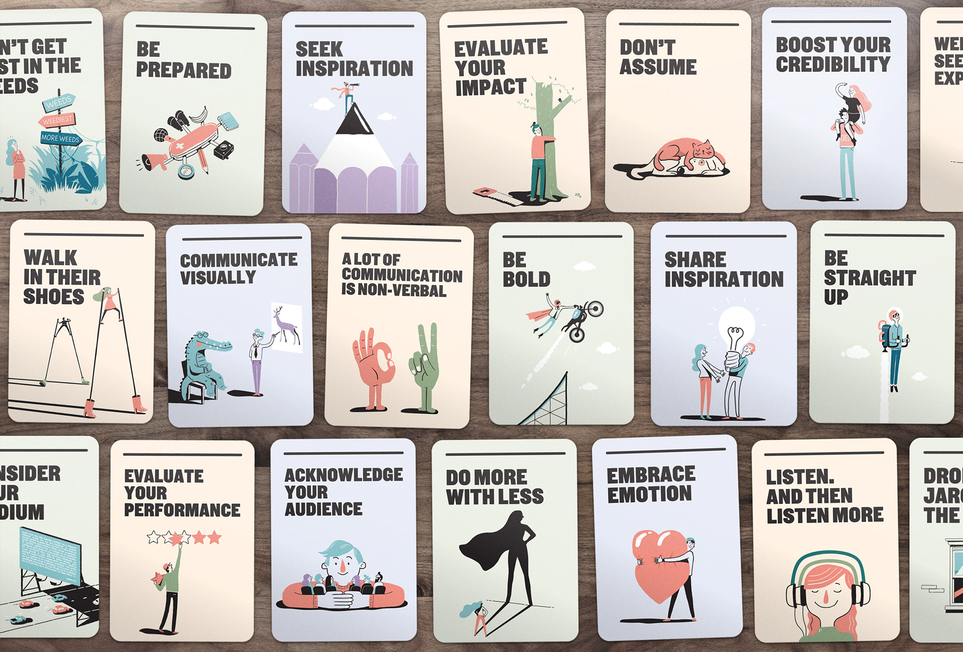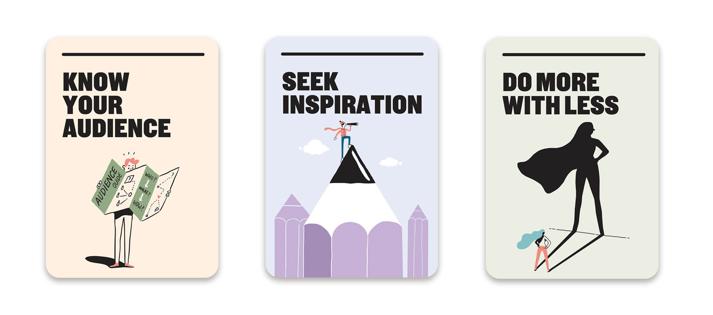 Illustration of 21 cards designed to help improve communication within the NSW government departments. Marco created the illustrations in collaboration with the very talented folks at For The People agency Sydney.