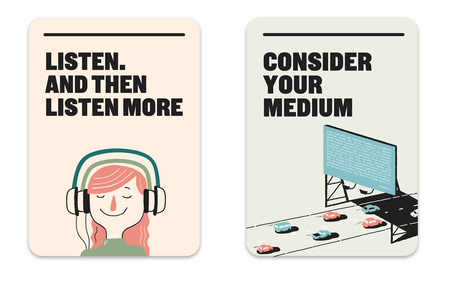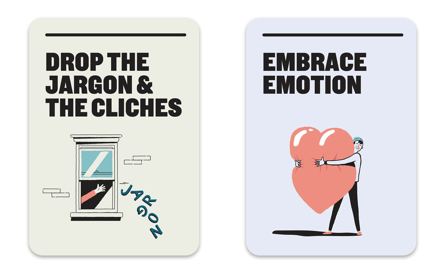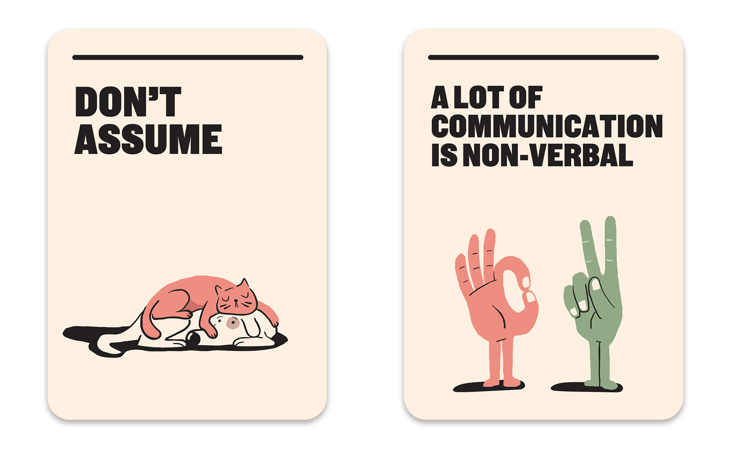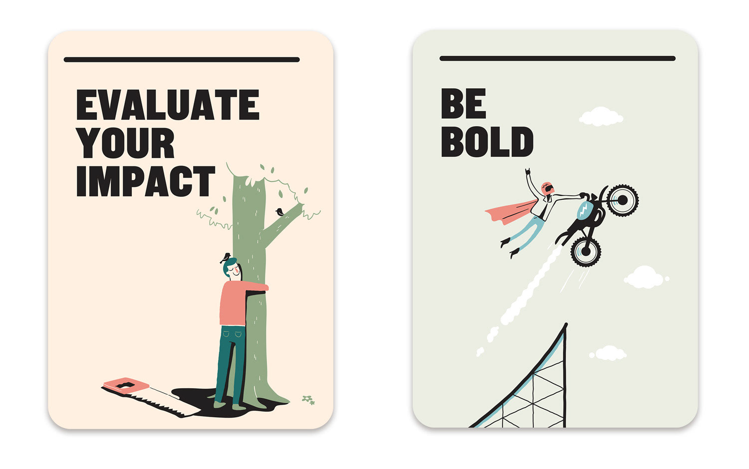 Illustration of 21 cards designed to help improve communication within the NSW government departments. Marco created the illustrations in collaboration with the very talented folks at For The People agency Sydney.